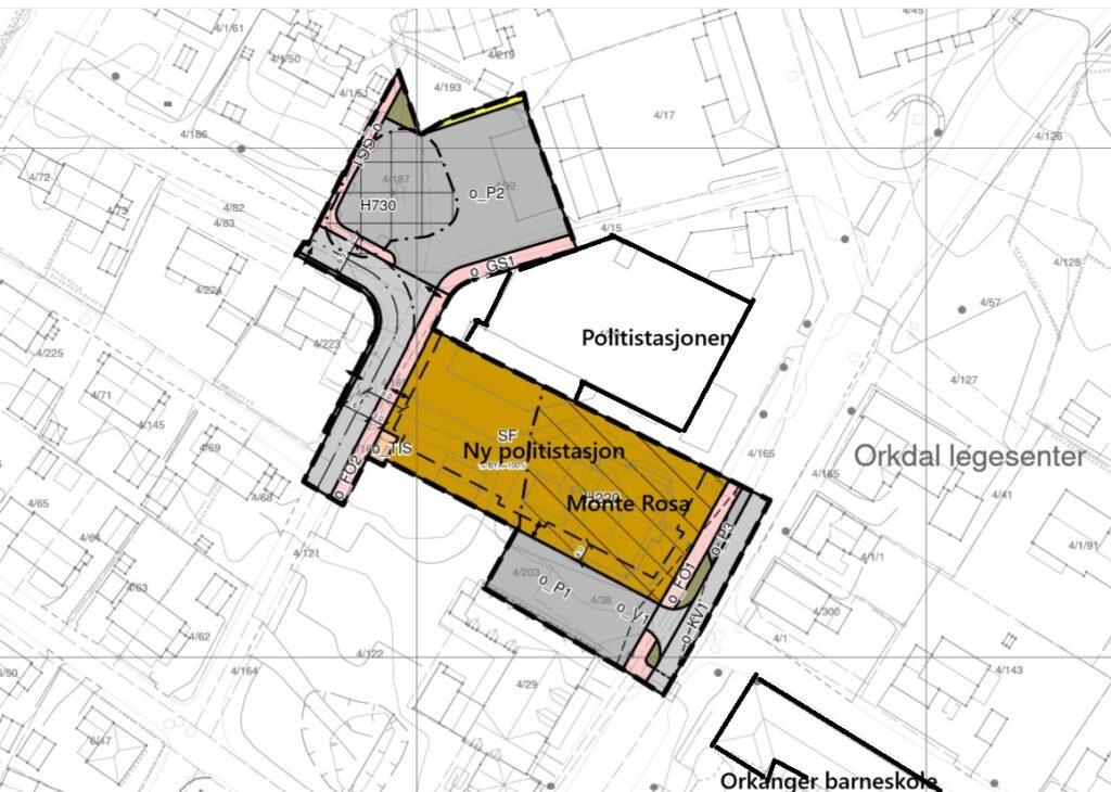 PS: Det er ikke avgjort at det kommer ny politistasjon der Monte Rosa ligger. Reguleringsplanen bestemmer bare byggehøyde, parkering osv. Staten skal lyse ut en konkurranse for å leie nye lokaler. Ledelsen ved Orkanger politistasjon ønsker å ligge i sentrum, men dagens lokaler er lite egnet.