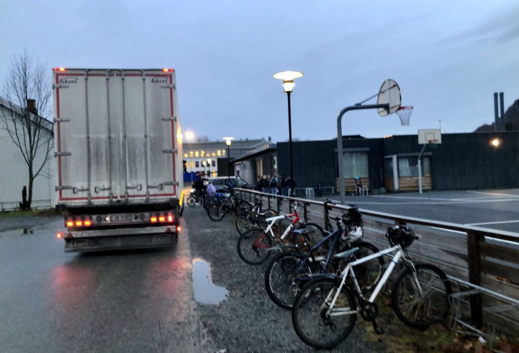 Allerede i januar 2023 registrerte kommuneoverlegen trafikkforholdene rundt Orkanger barneskole som et brudd på forskrift om helse, miljø og sikkerhet (avvik). Etter påtrykk fra Småbypartiet har en konsulent nå laget en plan for løsning. Forslaget forutsetter fortsatt omfattende parkering inn mot skolegården til barneskolen (bak semitraileren på bildet over). Det peker på ulike tiltak i Erik Aarviks gate. Les om trafikkplanen her.