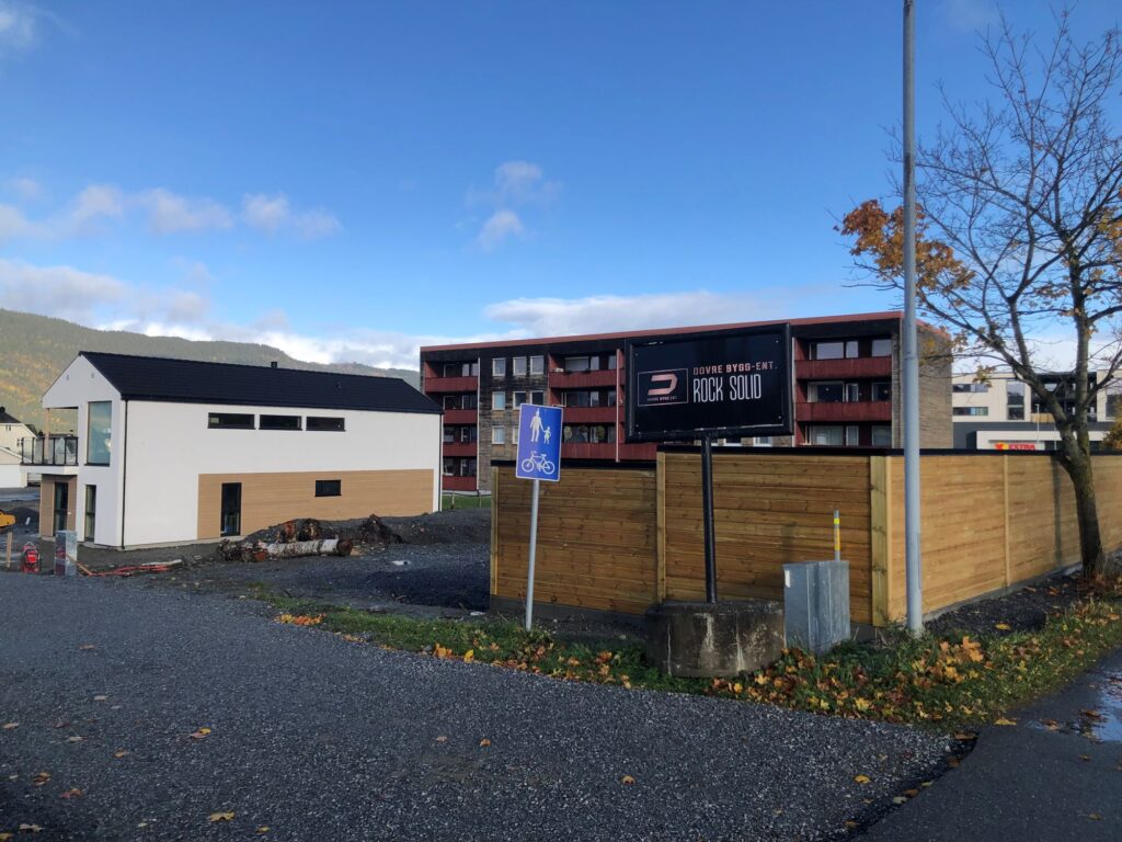 Men: Noe nytt skjer i hvert fall nær Orkanger sentrum. Den første av sju planlagte boenheter på tomta etter den gamle branntasjonen er tatt i bruk. Utbygger har satt opp støyskjerm mot Trondheimsveien, der det skal være 40 km/t fartsgrense, og dermed begrenset støy. Skjerming er likevel et selvsagt krav i dag siden vedvarende støy er en dokumentert helsefare.