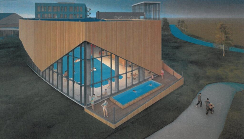 Orklandbadet ønsker å lage ny spa- og velværeavdeling og et tårn for ei høy sklie. Vannsklie er både livlig lek og sport med tidtaking. Tårnet kan bli et lite landemerke mellom bygningen og Gammelosveien. Se illustrasjon.